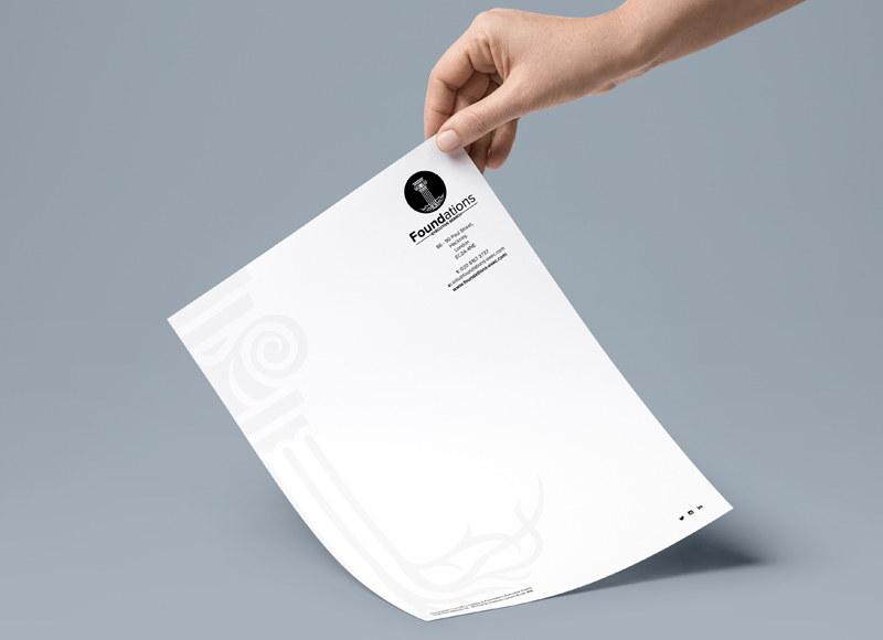 We were invited to create a recruitment brand for Foundations Executive Search. The brief was to create a logo with good strong roots and a pillar of strength. We designed a logo, letterhead and business cards with spot UV.